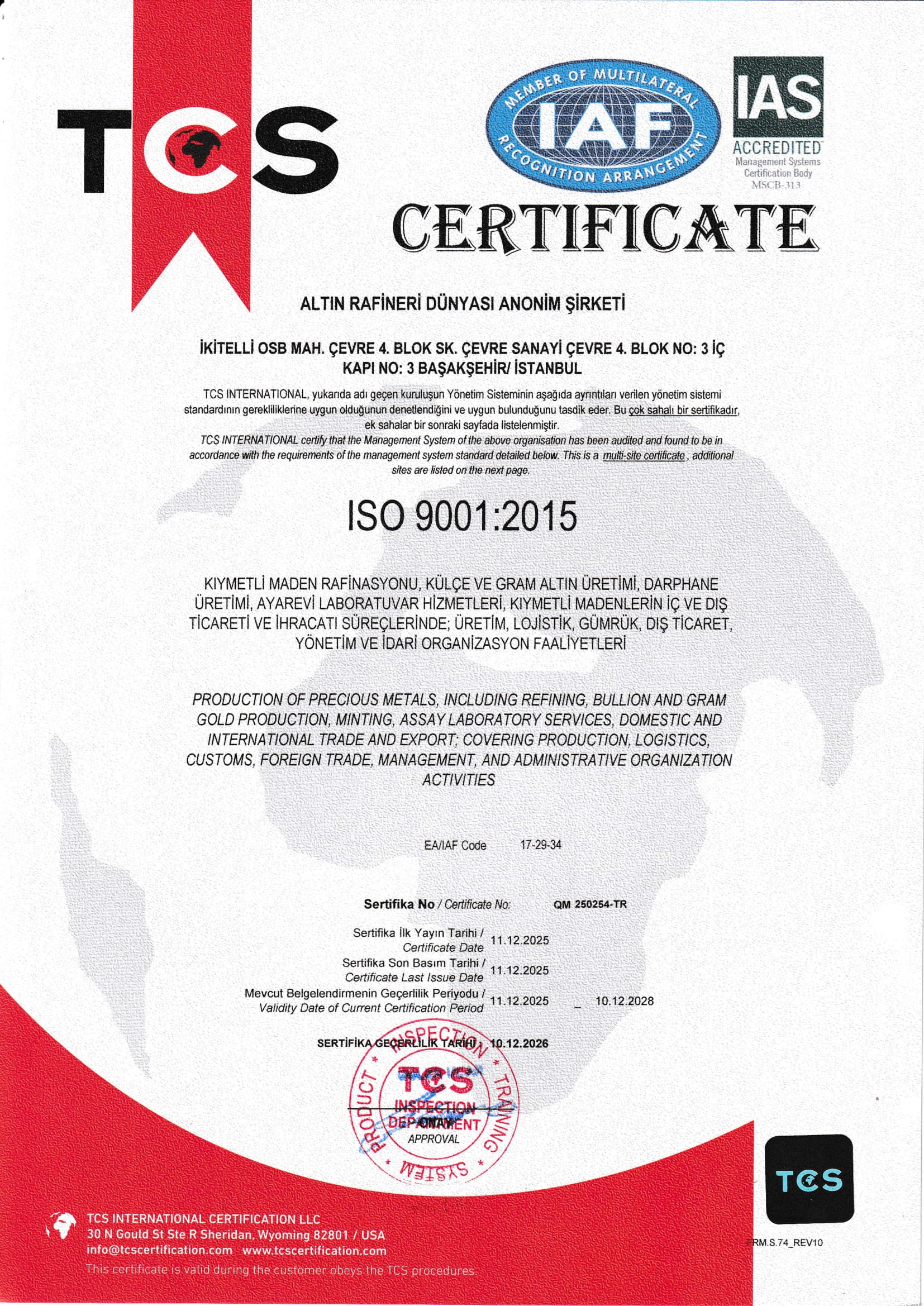 İkitelli OSB, Çevre Sanayi Sitesi 4. Blok No:3, 34490 Başakşehir/İstanbul